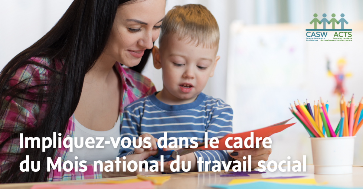 Chaque année, au mois de mars, les travailleuses et travailleurs sociaux de tout le pays célèbrent le mois national du travail social qui reconnaît leur contribution au bien-être de la société. Le thème adoptée par le Conseil de l'ACTS pour le Mois national du travail social 2018 était : De vraies personnes. De vrais impacts. Des informations sur le thème, les événements et les célébrations de 2020 seront disponibles au début de 2020: restez branchés!